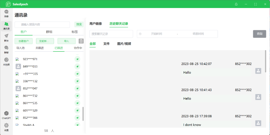 面对海量客户,销售宝施展 “排山倒海掌”,以一敌百不在话下。批量客户数据导入导出、群发消息、批量管理等功能,如同掀起数据的 “惊涛骇浪”。