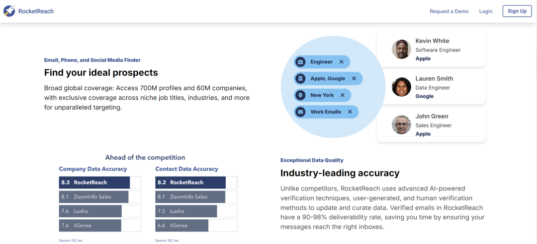 首先,在FlashIntel和Rocketreach之类的信息聚合平台挖掘潜在客户,这些客户信息画像都是丰富立体的,不管是B2B还是B2C都可以在这里根据关键词搜索挖掘相关需求客户。