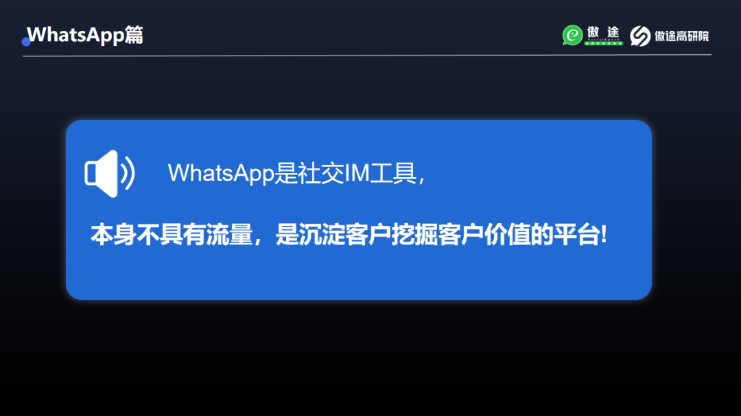 关于WhatsApp获客,一定要建立的认识是:WhatsApp是IM工具,本身不具备流量,是沉淀客户和挖掘客户价值的平台。