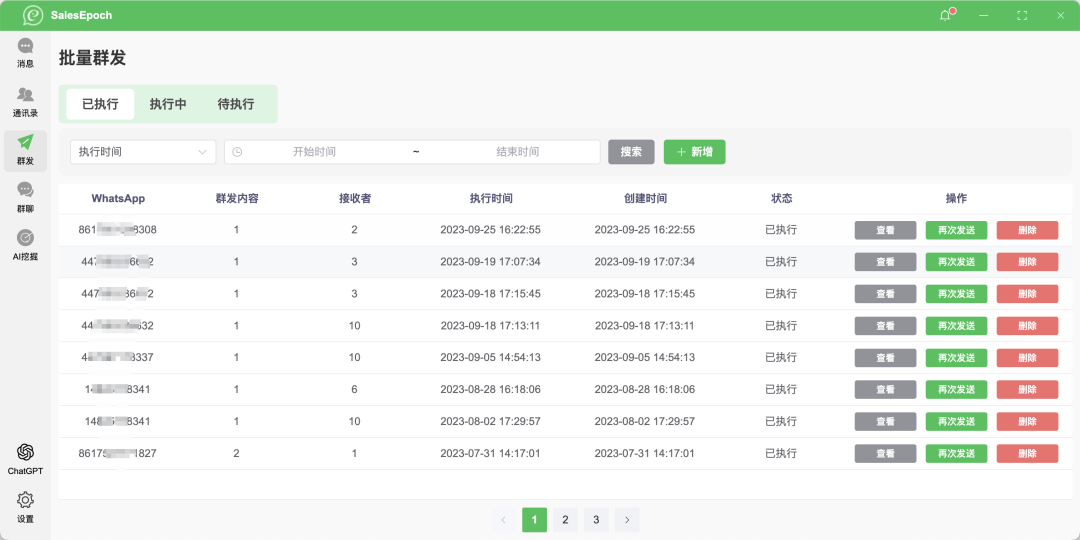 主动加好友:主动给客户发WhatsApp开发信或者加好友。在这样的情形下,想要获得大量客户,基本都是通过群发营销。