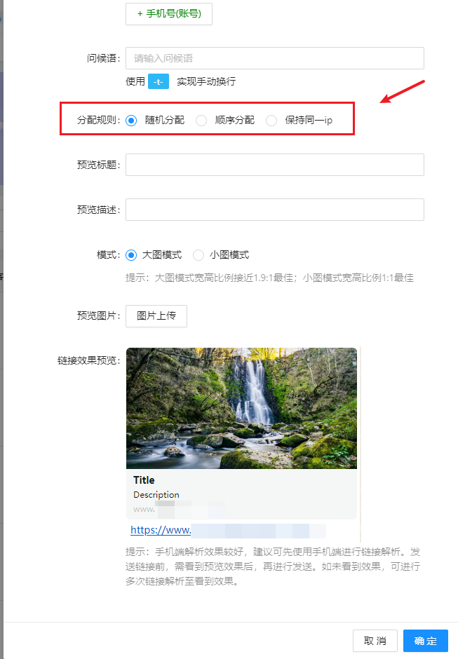 此外,该活码工具还支持分流链接预览功能。企业可以自由编辑标题描述,选择吸引人的预览图片,让客户在扫描前就能对相关内容有初步了解,使用起来更加便利、人性化,极大地优化了客户承接流程 。