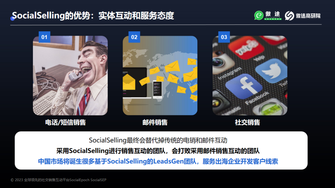 从原来的短信电话销售到邮件销售,再到现在的社交销售,企业与客户双方充分实时互动、个性互动,互动的效率一直在提升。