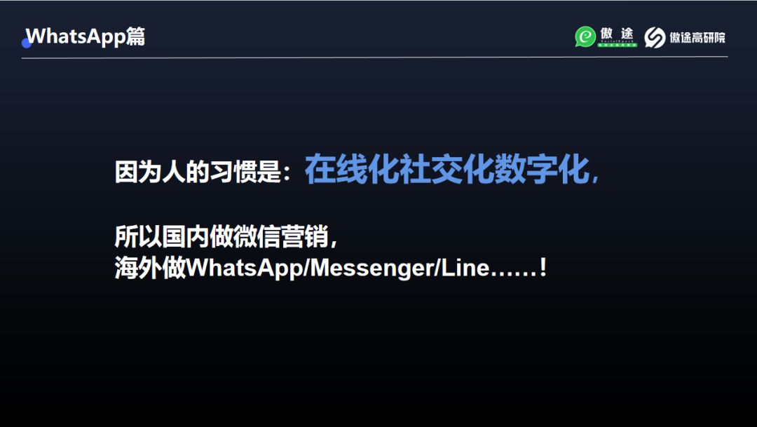所有人都有一个特点:在线化社交化数字化,也就是所有人都集中在社媒社交平台上。国内用户几乎都会使用微信、抖音、小红书;而海外用户几乎都会使用WhatsApp、Facebook、TikTok等社媒社交平台,所以就有社媒社交平台是营销必争之地的新说法。