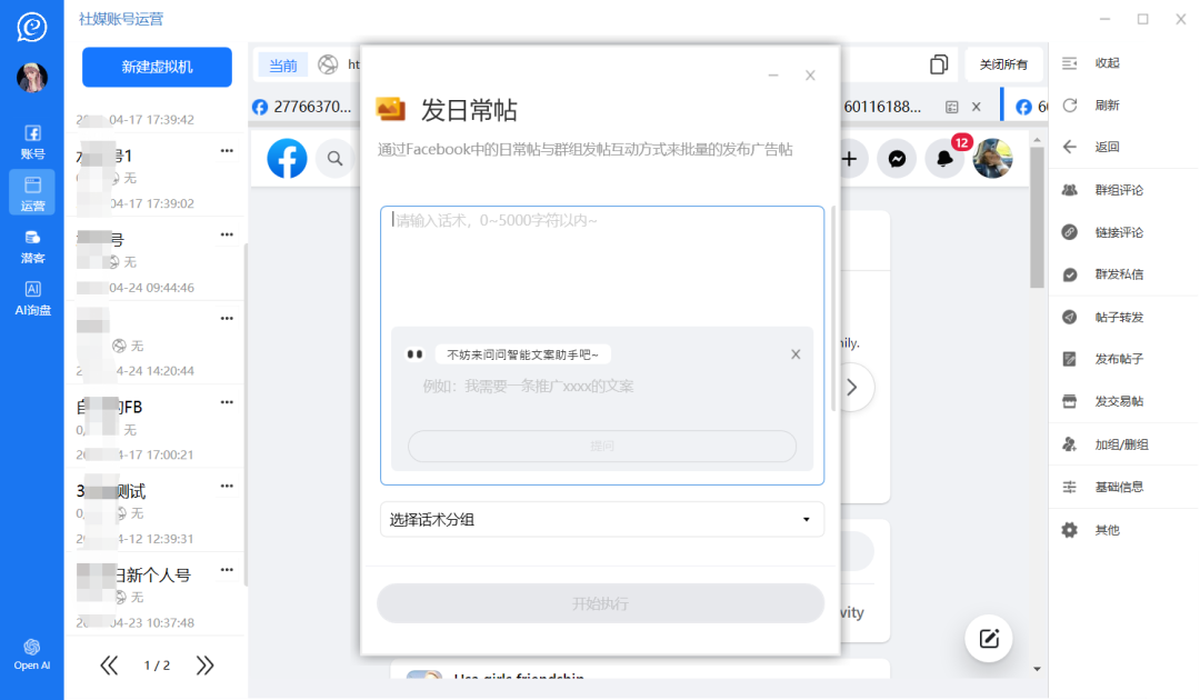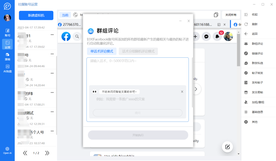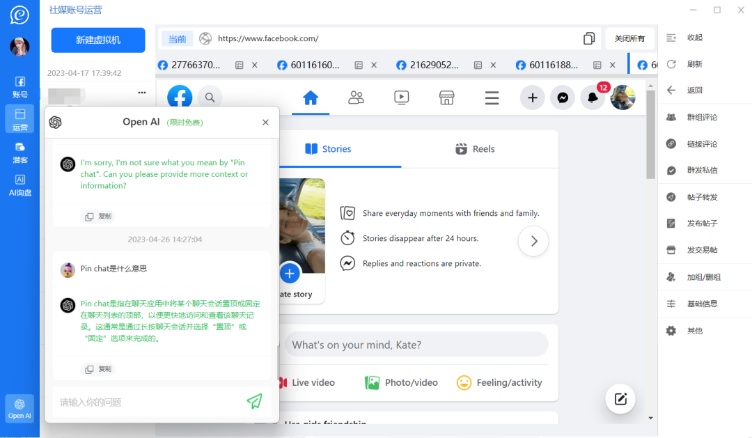 1 什么是傲途Facebook询盘宝/引流宝? 傲途基于Facebook生态自主研发的社媒营销引流工具,通过RPA(机器人流程自动化)和账号矩阵实现批量化自动化社媒营销,解决外贸和跨境企业最为担心的Facebook营销引流问题。 一个Facebook询盘宝/引流宝= 多账号批量引流工具+ 官方号营销赋能工具+ 去中心化分发工具+ VOC客户之声工具+ UGC用户内容工具+ 在SocialSelling社媒销售时代下,Facebook是流量汇聚的载体,是社媒销售的场景,丰富了成交环境,也健全了用户画像体系。在未来的销售交易场景中,Facebook询盘宝/引流宝赋能的,不只是引流和营销,还有成交。 2 什么是ChatGPT? ChatGPT(全名:Chat Generative Pre-trained Transformer),美国OpenAI 研发的聊天机器人程序 ,于2022年11月30日发布 。 ChatGPT是人工智能技术驱动的自然语言处理工具,它能通过理解和学习人类的语言来进行对话,还能根据聊天的上下文进行互动,真正像人类一样来聊天交流,甚至能完成撰写邮件、视频脚本、文案、翻译、代码,写论文等任务。 3 当AIGC结合RPA 海外社媒营销天花板模式来啦 Facebook询盘宝内傲途Chat 在Facebook询盘宝/引流宝的最新版本内,我们正式接入了ChatGPT,实现了免费的傲途Chat+智能发帖文案助理+智能评论文案助理,从内容角度赋能企业社媒营销。 很多外贸和跨境营销主都知道,移动互联网和平台的过渡,让流量成本和结构发生了天翻地覆的变化。以外贸营销来说,展会、谷歌推广和B2B平台已不再是唯三选择。全球用户的社媒社交趋势已势不可挡,无数B2B和B2大C也纷纷走向Social,走向社媒销售,走向SocialSelling。 因此,以FB为代表的社媒营销,也是所有外贸和跨境企业的必备。而企业想要做好Facebook类社媒营销,内容数量、内容质量、分发效率等决定了曝光引流效果。 傲途Facebook询盘宝/引流宝以RPA和账号矩阵为媒介,解决了分发效率的问题。而ChatGPT类AIGC,则解决了内容质量与数量的问题。两者结合以后,企业海外社媒营销的能力能够得到N倍放大加持。而且这一次,这种社媒营销+销售的能力是去中心化的,每个外贸员或者海外销售都可以结合这样的工具运营,获得引流营销的能力,开发客户、获取询盘。 随时随地调用智能文案助理 更具体一点,在Facebook询盘宝内,每个用户都能直接使用OpenAI,方便每一位运营者随时随地生产和寻找创意灵感。 此外,在群组评论和主页发帖这两个环节,都直接接入ChatGPT设置智能文案助手,随时调用随时生产随时发布,让每一位外贸销售员都能高效率低成本完成营销引流动作,腾出更多时间精力用于精聊和转化。 小结: 傲途Facebook询盘宝/引流宝已接入ChatGPT:AIGC+RPA(机器人流程自动化),百变内容搭配海量账号批量化自动化营销,提升运营效率、提高曝光数量、降低营销成本。 即刻扫码沟通,布局Facebook新营销。
