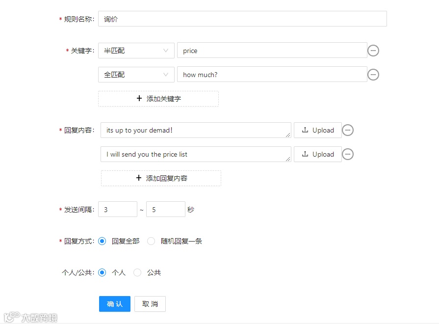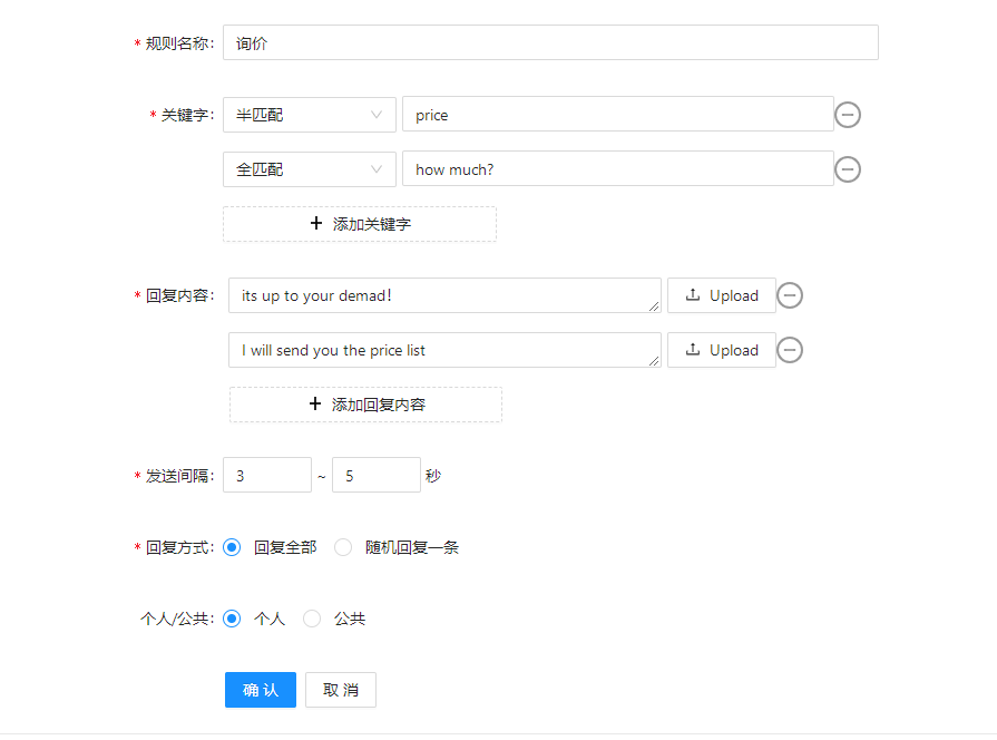 第二, 结合关键词回复的设置,每个企业都可以打造自己的智能聊天机器人。