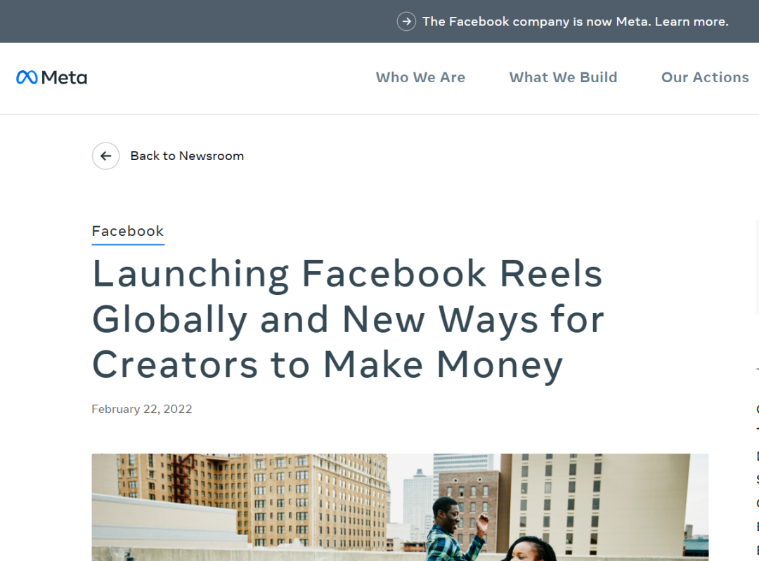 无独有偶,近期Facebook母公司Meta也宣布,将会向全球所有FB用户开放短视频功能平台Reels。Meta的入局和关注,自然是看到了短视频对用户眼球和心智的争夺,也是对其未来商业化变现能力的肯定。