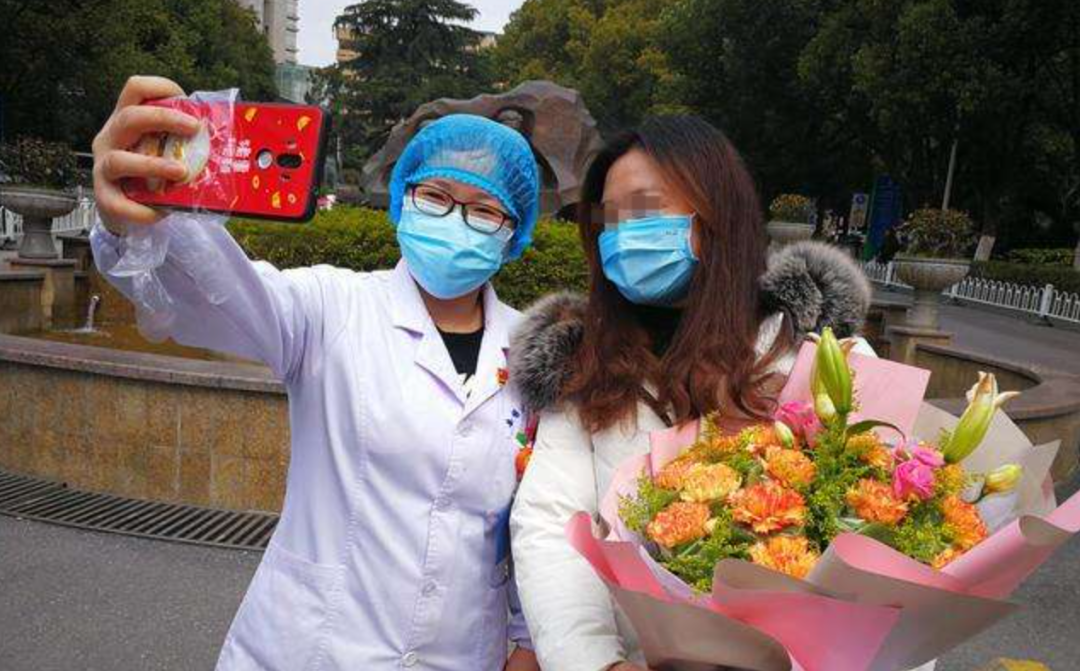 新冠患者出院时与医生合影自拍(资料图)