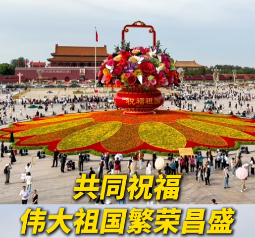迎国庆,2025年“祝福祖国”巨型花篮正式亮相天安门广场。篮内选取了美好寓意的花卉,其中荷花寓意“和和美美”、橄榄枝寓意“荣耀和平”等,还结合和平鸽元素,体现“和平发展、欣欣向荣”。(新华社)