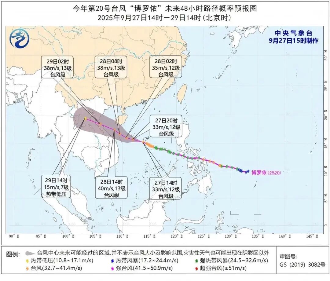 27日,今年第20号台风“博罗依”(强热带风暴级)已加强为台风级,预计“博罗依”将于28日白天掠过海南岛以南海面。受其影响,华南沿海和南海海域将有强风雨天气。(@中国天气)