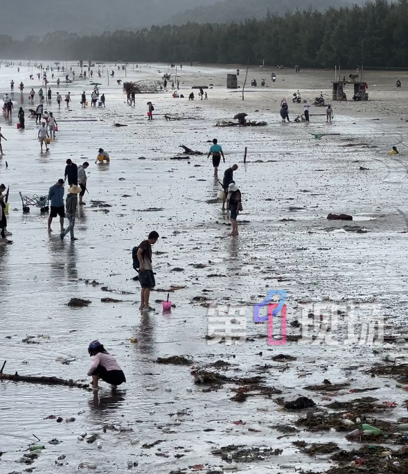 2025年6月,台风“蝴蝶”过后,不少网友发视频称,广东沿海附近的海滩上惊现大量生蚝、毛蚶等贝类海鲜,不少人拎着水桶,拿着袋子前往“赶海”。