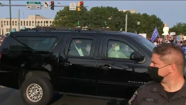 据美媒报道,美国总统特朗普当地时间4日下午,乘坐专车短暂离开沃尔特·里德医疗中心,他在车内向医院外的支持者挥手致意。