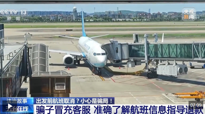 嘉兴市海盐县公安局刑侦大队民警 顾棋超:被害人都是在飞机起飞前一天被诈骗的,犯罪分子通过拨打电话的方式冒充航空公司客服,谎称被害人乘坐的航班故障,需要改签或者退票。退票和改签有补偿,需要被害人通过支付宝或者微信进行领取。