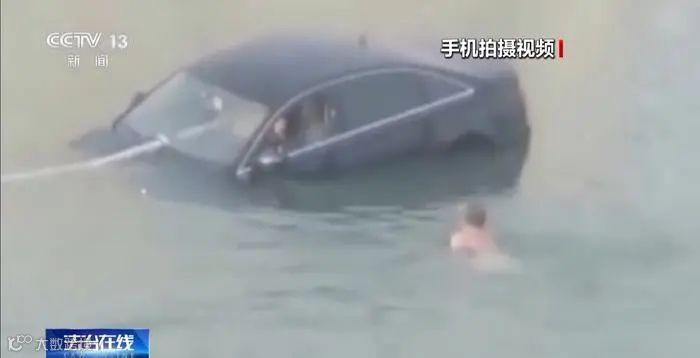 很快,张宝付便游到了落水女子的身边,他先将女子从车内拽出来,随后又把她扶到了车顶,然而落水女子刚刚爬到车顶,汽车就开始往水里沉去,紧接着张宝付和落水女子先后沉入到了水中。