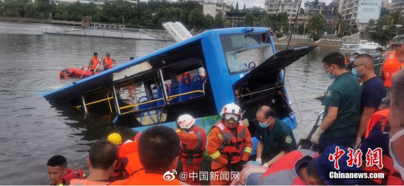 今天(7日)中午12时左右,在贵州安顺,一辆载有学生的公交车一头撞坏道路护栏,冲进安顺市虹山水库。