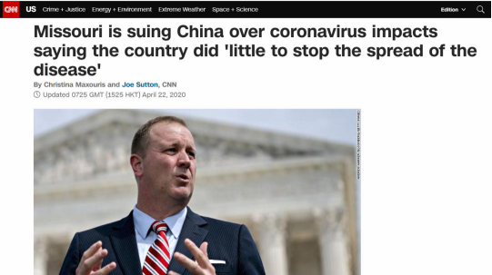 美国密苏里州司法部长以官方身份在密苏里东区联邦地区法院向中国政府提起民事诉讼