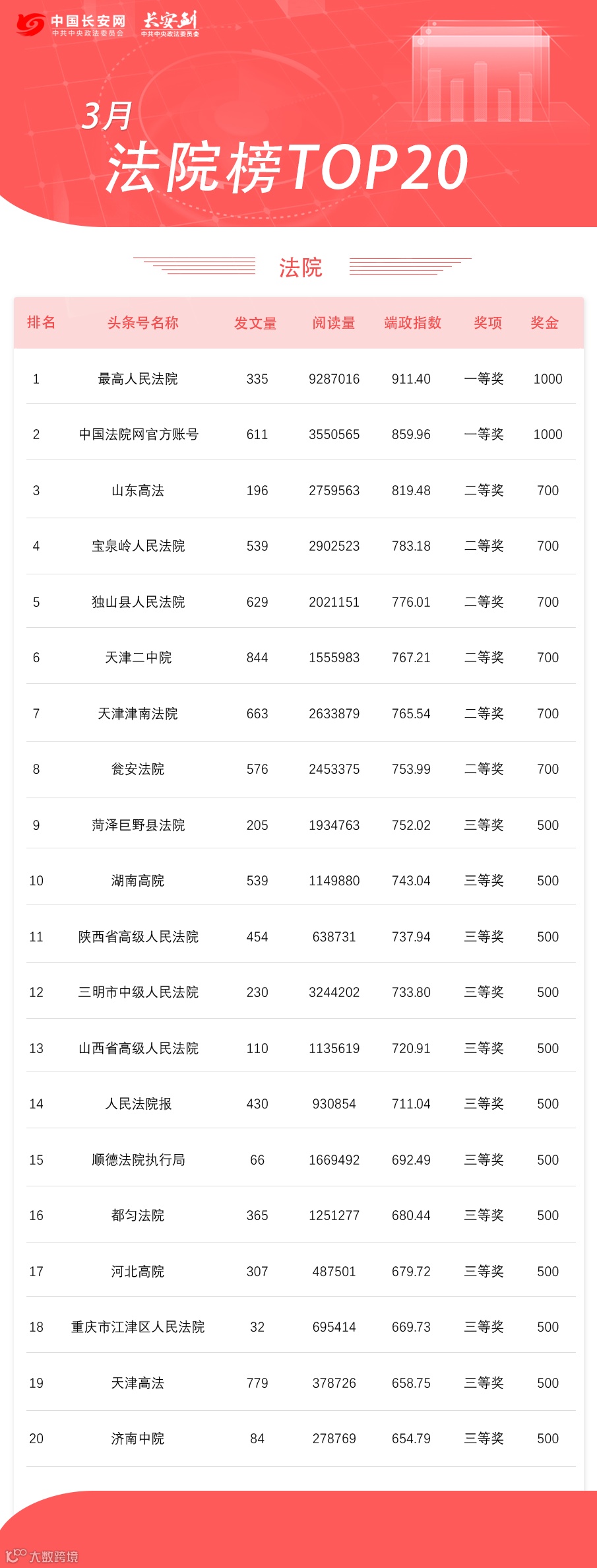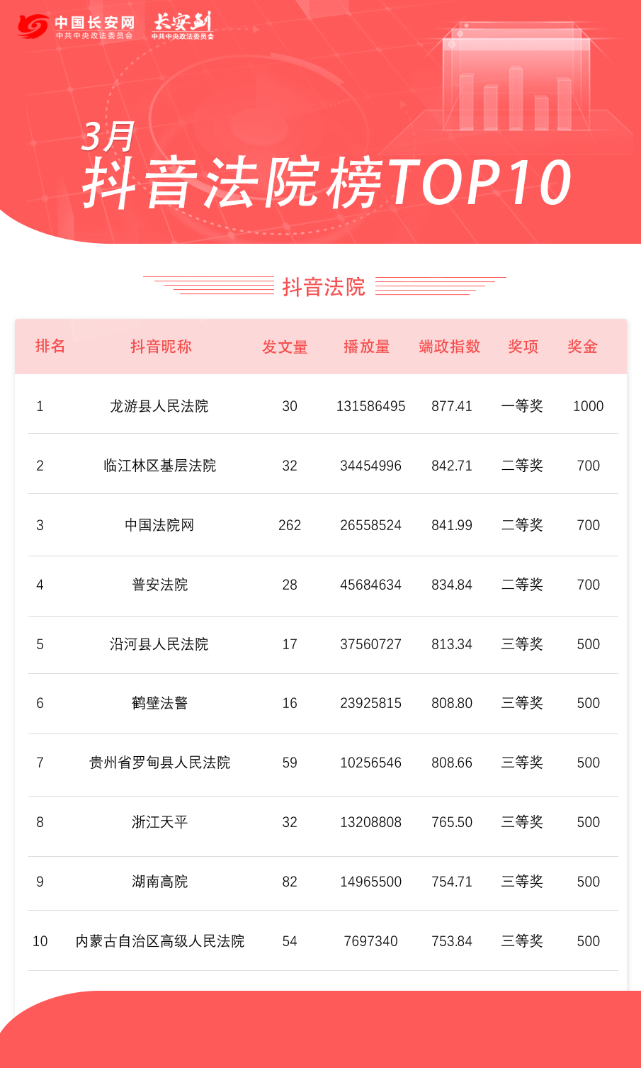 抖音法院榜TOP10