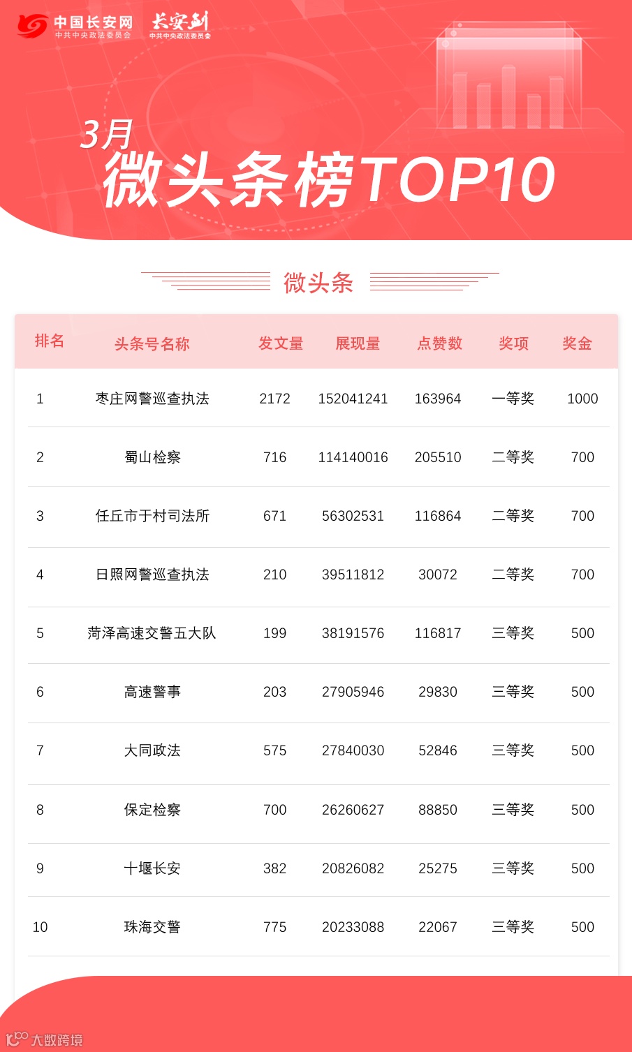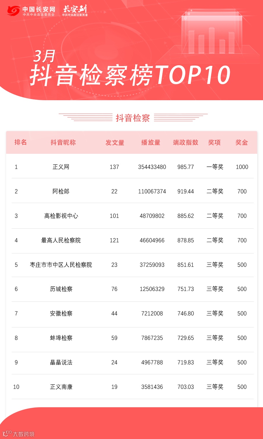 抖音政法委榜TOP10