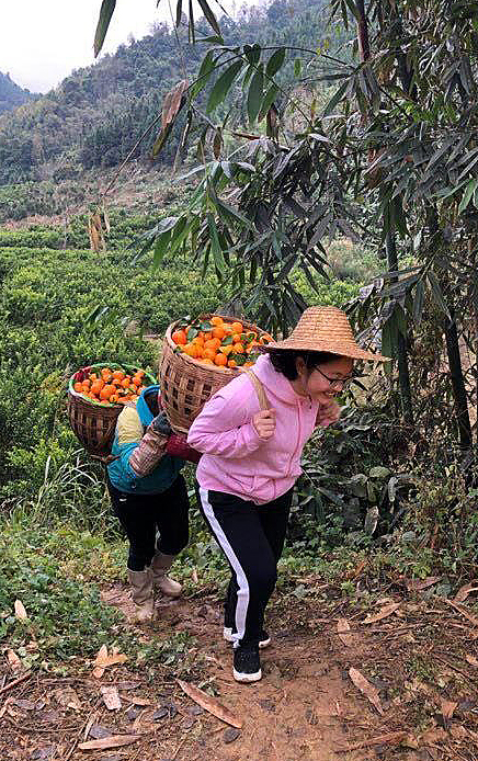 黄文秀到村民家走访,主动帮村民掰玉米(资料照片)。