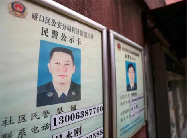 利济派出所共和社区警务室门口的宣传栏上,民警吴涌的照片依旧守护在那里