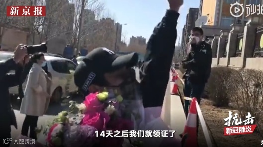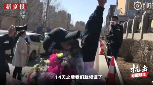 2、援鄂护士刚回沈阳被求婚,男友围墙外大喊14天后我们就领证 28日,辽宁162名支援湖北医护人员从武汉返回沈阳。护士王诗宇通过视频通话见到男友小郑。医护人员入住宾馆隔离后,小郑在围墙外向王诗宇大声求婚:14天后我们就领证!王诗宇点头答应。(@新京报我们视频)