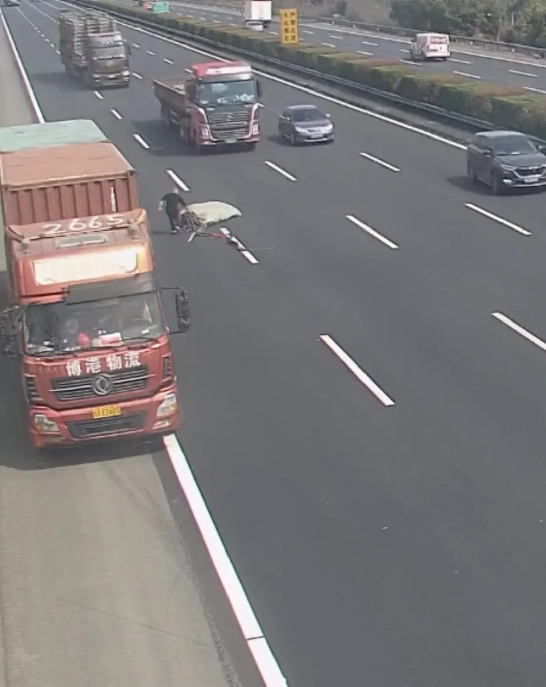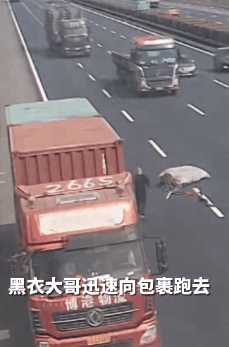远远看见高速中间有个大袋子