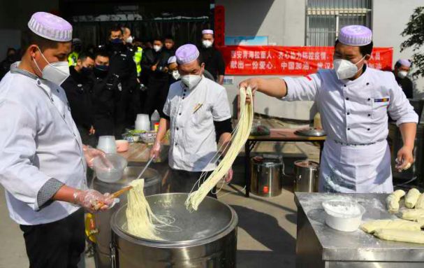 都说陕西人爱吃面,为了能让执勤民警、防疫人员吃上一碗热乎乎的面条,西安29家青海拉面馆的师傅组成了一支爱心拉面服务队,在每个高速路口和交警大队现场制作拉面,每天200碗,直到疫情结束……