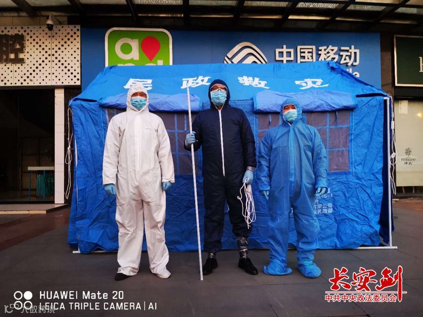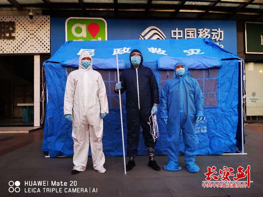 洪山区关山街道干部严其亿(中)在抗疫一线表现突出,火线提拔为二级主任科员。
