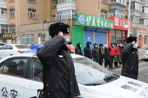 王春天出殡那天,初春的齐齐哈尔飘起了雪花。由于战“疫”前线任务紧急,很多同事未能送战友最后一程,他们只能在执勤的街道上向着灵柩车驶过的方向远远敬了一个礼……