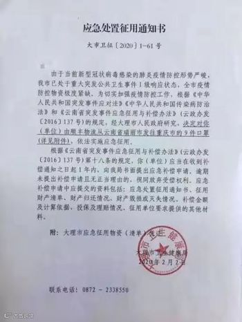 5、大理市卫健局长被免职 近日,云南大理市卫生健康局对大理市对发往重庆市的口罩实施“紧急征用”。2月6日,云南省委宣传部发布云南对大理市征用疫情防控物资予以通报批评,大理市随后回应将严肃处理并将口罩返还重庆。大理市当晚发布通告称,对大理市卫生健康党工委书记、市卫生健康局局长杨砚池给予免职处理,对大理市工信和科技局党组书记、局长方虎给予政务记过处分。(@央视新闻)