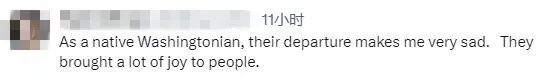 有网友说,“作为一个土生土长的华盛顿人,它们的离开让我非常难过。它们给人们带来了很多快乐。”