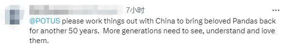 还有网友表达了类似的想法,期盼未来还会有新的大熊猫前往美国,尽管没有谁能够代替“美香”一家。