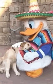12月6日,据媒体报道,一条专门治疗自闭症的金毛,来到了迪士尼,没想到赖上唐老鸭不走了。