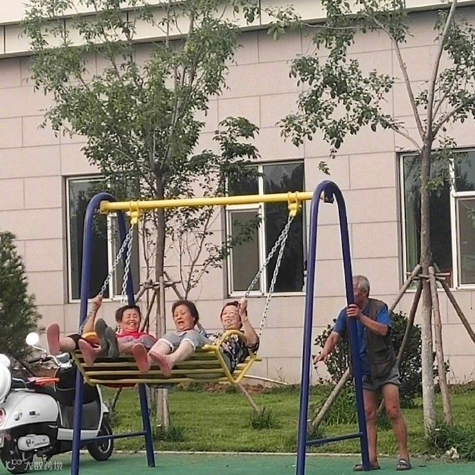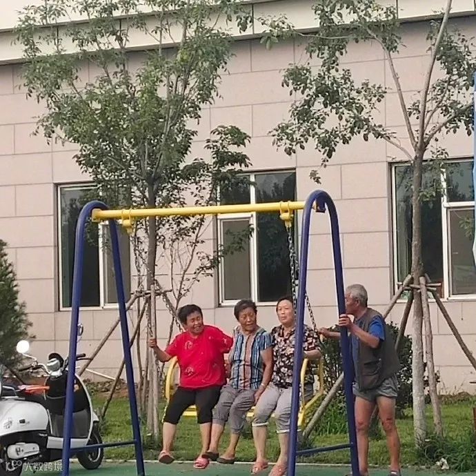 “老头子,过来给我推一下,我跟我老姐妹们要荡秋千!”