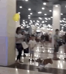 人头攒动的商场,小柯基不知怎么发现了一只气球,兴奋地玩儿了起来,它用脑袋顶球,眼睛随着气球起起落落,不管铲屎官在哪儿,也看不见围着自己的人群,快乐到忘乎所以。
