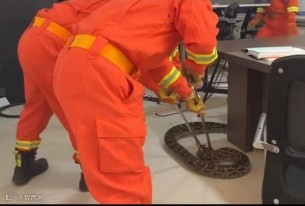 1、40斤蟒蛇爬进派出所110求助119 3日,云南西双版纳一派出所办公室突然爬进一条大蟒蛇,给民警吓得一激灵。民警蹑手蹑脚观察后发现蛇太大,为保险起见,便拨打119请求帮助。消防员赶到,一番观察后,不到5分钟就将蛇捕获。(@人民日报)
