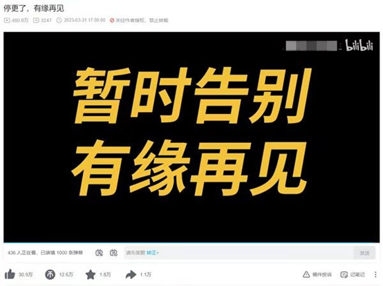 3、B站UP主发起停更潮 近日,多位B站UP主公开宣布暂停更新。停更原因不尽相同,大部分UP主表示是因为平台收益减少、收支难以平衡。2日,B站一位近四百万粉丝的up主表示目前整个团队属亏损状态,无法养活一个团队,另表示目前AI创作的能力亦是打击原创视频的一个原因。(九派新闻)