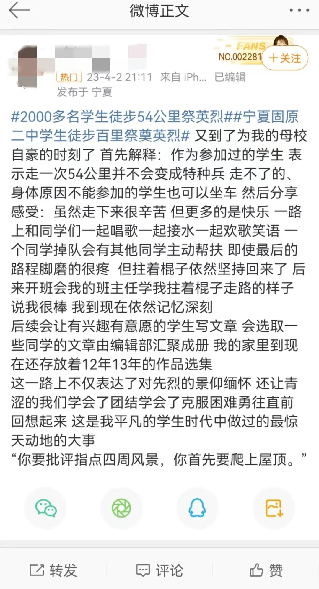 ——这不只是磨砺,还是呵护。徒步54公里对于成年人尚不轻松,何况孩子。呵护不只存在于民警和志愿者的一路护送之中,不只存在于充分的准备与预案里,54公里的磨砺本身就是一种呵护。没有谁的人生会一路平坦,在“拔节孕穗期”的青葱少年时,就明白要一步一个脚印奋勇前行的道理,不仅能抵达更远的远方,还能将人生的路走得更宽。
