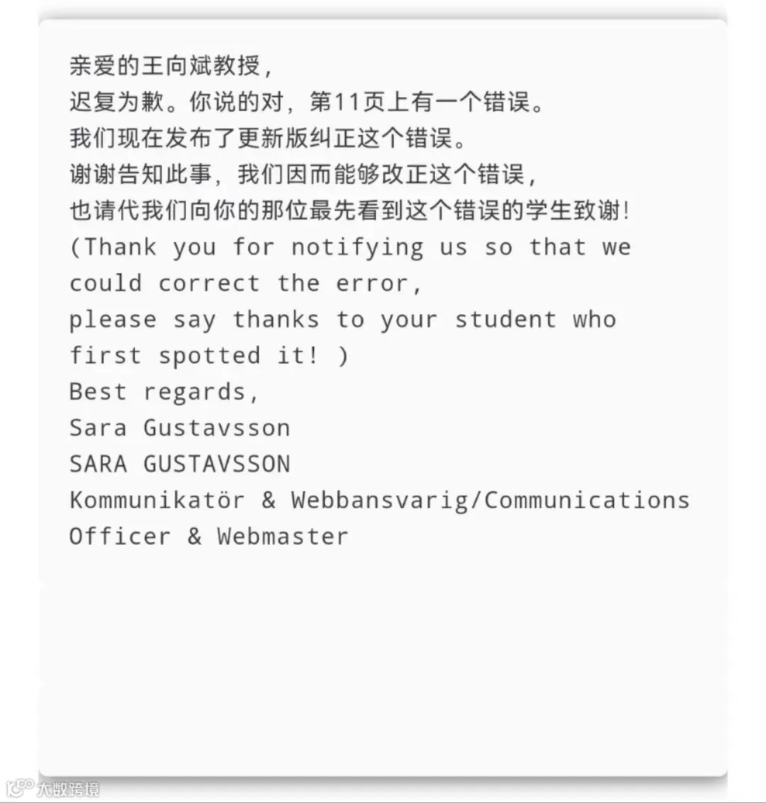 科学背景报告中的一处笔误