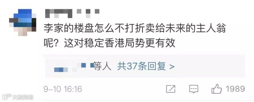 还有网友更直接:把李家的楼盘打折卖给“未来的主人翁”,这才是真正为香港好。