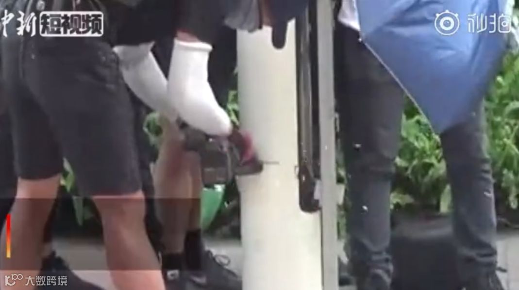 2、香港示威者用电锯毁坏灯柱 24日,在香港的一场游行示威中,部分激进示威者以怀疑路灯灯柱有人脸识别功能为由,以电锯毁坏灯柱并将其拉倒,随后进一步对灯柱进行踩踏和破坏。事实上,香港特区政府已经辟谣,智慧灯柱收集的并非个人数据也并无人脸识别功能,拍摄所得数据也不会用于人脸识别应用。(@中新视频)
