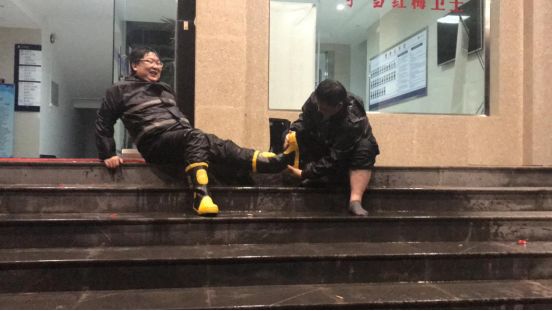 全天涉水,回到派出所却发现长时间浸泡的雨靴怎么也脱不下,只能向战友求助——