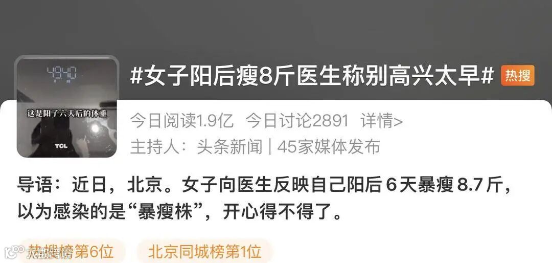 “阳”后6天暴瘦8.7斤,这样的掉秤幅度“羡煞”不少网友,过去狠狠努力半年都减不下来的体重突然如愿,有网友笑称这也算是种“苦中作乐”了,但专家提醒,可别高兴太早。