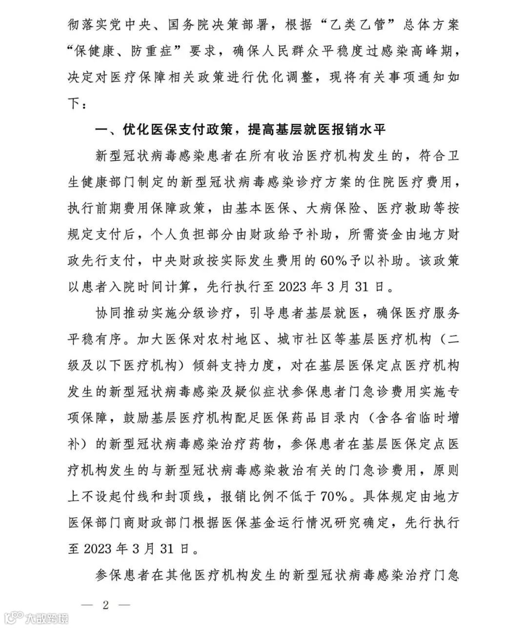 国家医保局、财政部、国家卫生健康委、国家疾控局今天发出《关于实施“乙类乙管”后优化新型冠状病毒感染患者治疗费用医疗保障相关政策的通知》。