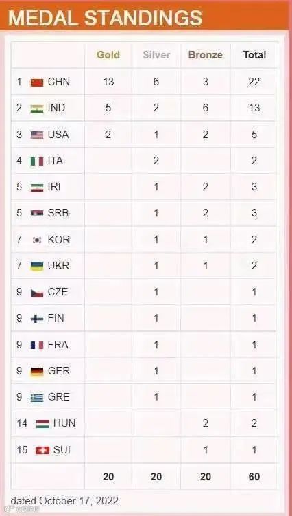 北京时间17日,2022年射击(步手枪)世锦赛在埃及开罗结束第四日争夺。目前,中国队以13金6银3铜共22枚奖牌数在金牌和奖牌双榜上遥遥领先。
