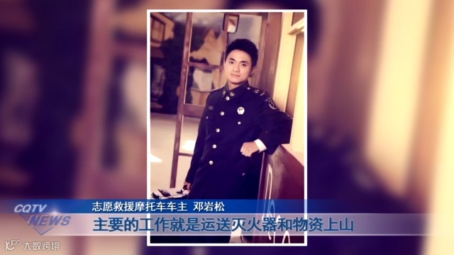 巴南区界石镇发生山火后,22岁的徐瑞是首位自愿赶到现场的摩托车骑手,他在运送救灾物资的同时,还不停联络其他骑手。