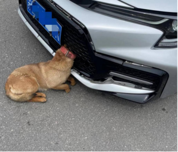 2、离奇车祸:小狗卡进保险杠,狗没事,车坏了