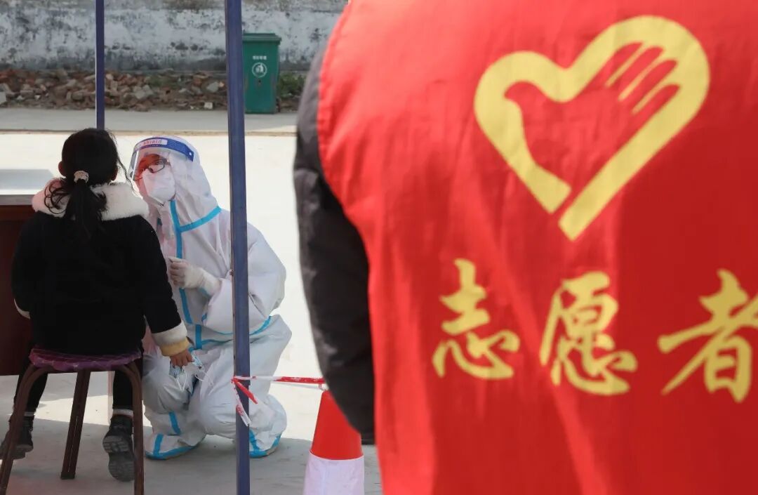 23日,在河南省焦作市温县岳村街道后岗村核酸检测点,医务人员为一名小朋友进行核酸采样。