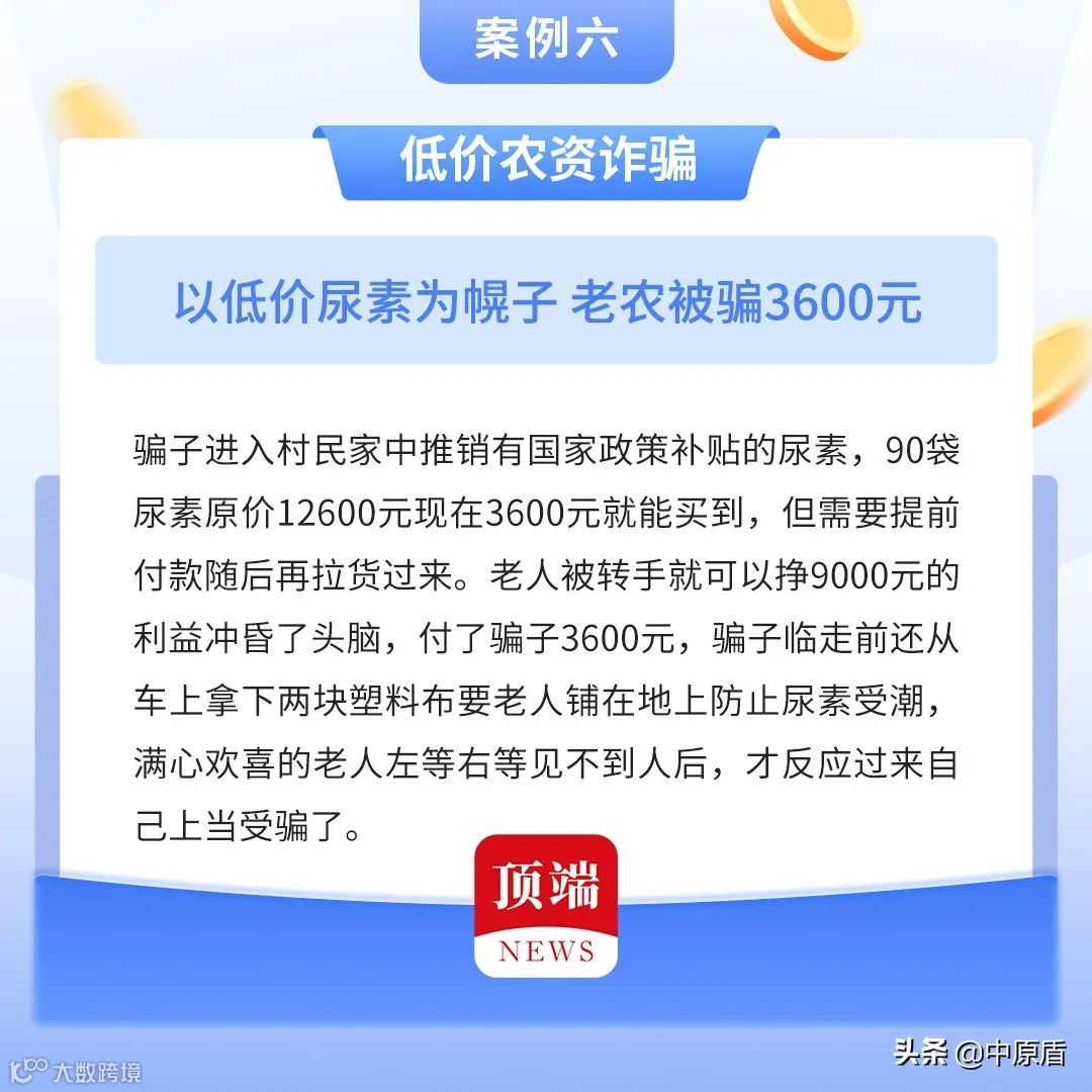 为提高广大老年人反诈防骗意识,河南省公安厅梳理了最近几年针对老年人实施诈骗的投资收藏品、新型麦苗、街头祈福、扶贫电商、网上炒股、低价农资等六大类型经典诈骗案例,提醒广大老年人切勿上当受骗。
