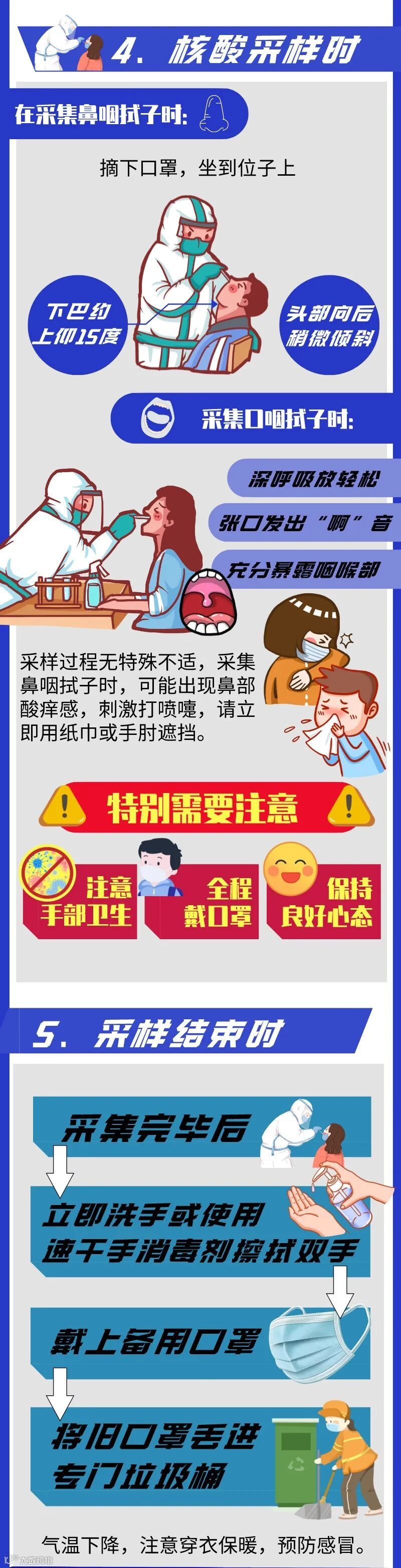 部分地市发布了大规模核酸检测通知。接到通知如何准备?请您牢记五个时间节点,协助保质保量完成划定区域内全员核酸检测任务,实现“早发现、早隔离、早诊断、早治疗”。