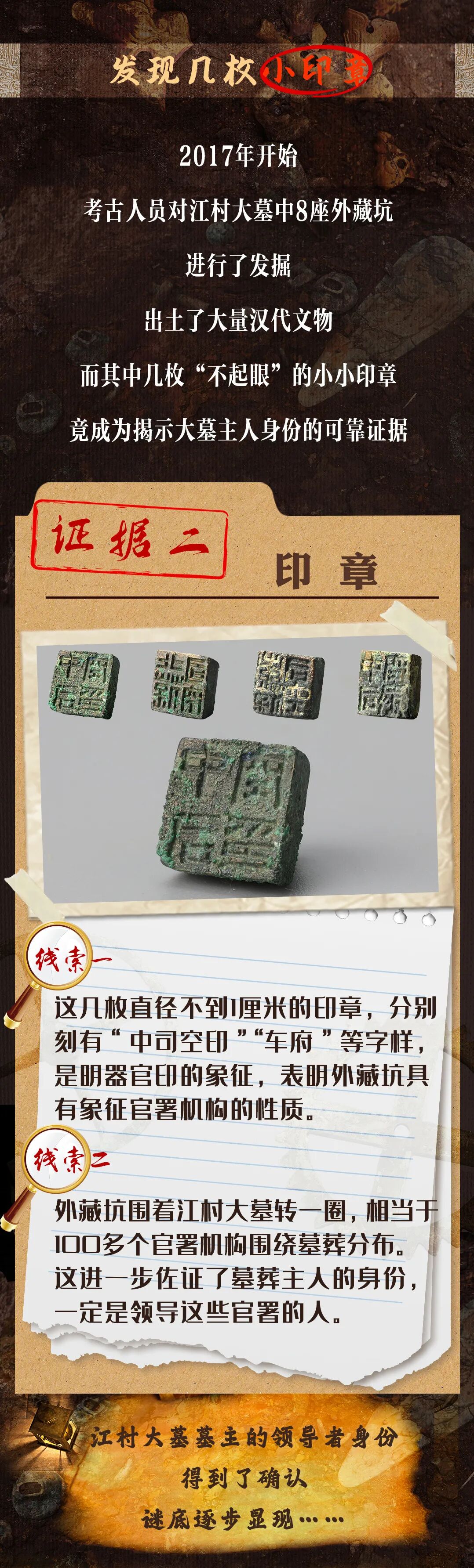江村大墓位于陕西省西安市灞桥区。2016年江村大墓外藏坑受到盗扰,为确认墓葬保存状态及周边文物分布情况,经国家文物局批准,考古工作者对江村大墓及其附近的窦皇后陵、薄太后南陵和相传为汉文帝霸陵的“凤凰嘴”地点,进行了系统的考古调查、勘探,并对陵园外藏坑进行了考古发掘,目前基本确认江村大墓为西汉早期汉文帝刘恒的霸陵。